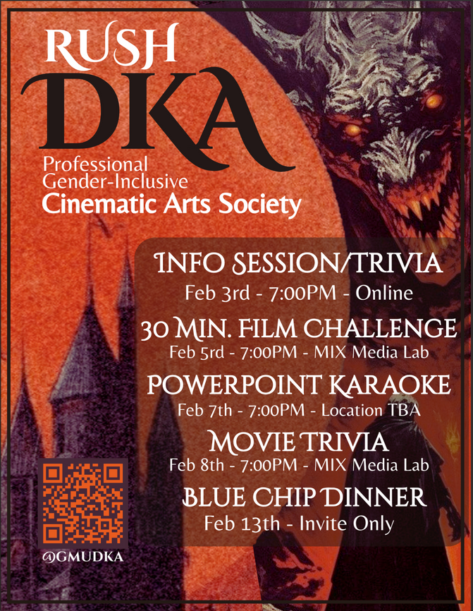 The mission of Delta Kappa Alpha is to foster lifelong character, collaborative and creative storytelling, ethical and productive business practices, philanthropic action, and societal bonds by and between students of the cinematic arts.